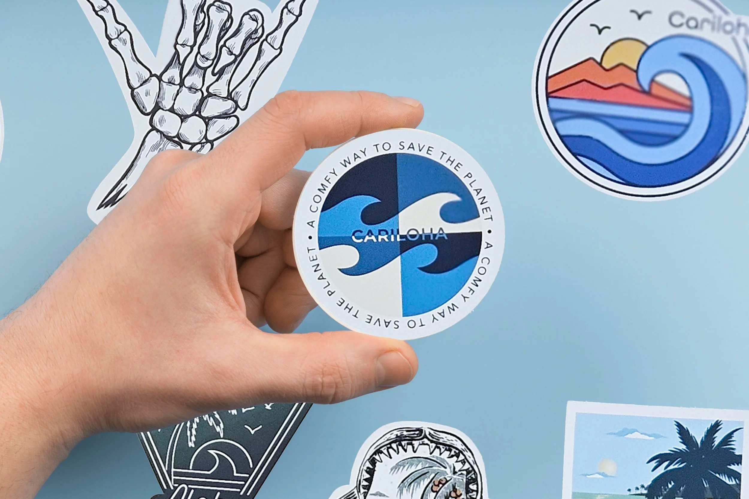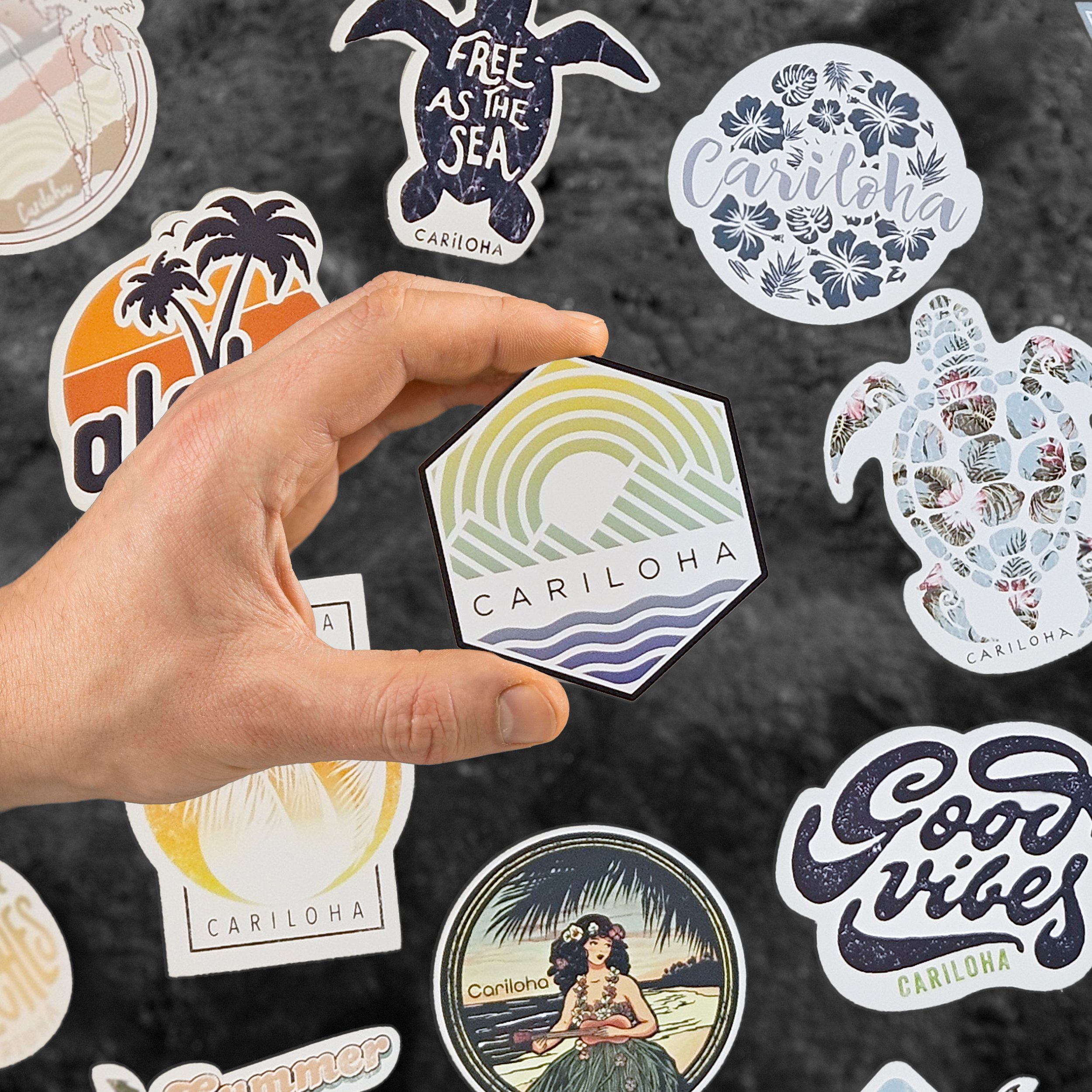 Paradise, stuck on you. Our Cariloha exclusive sticker series features hand-designed island motifs that turn your personal items into a tropical getaway. High-quality, weather-resistant, and infused with total island vibes.